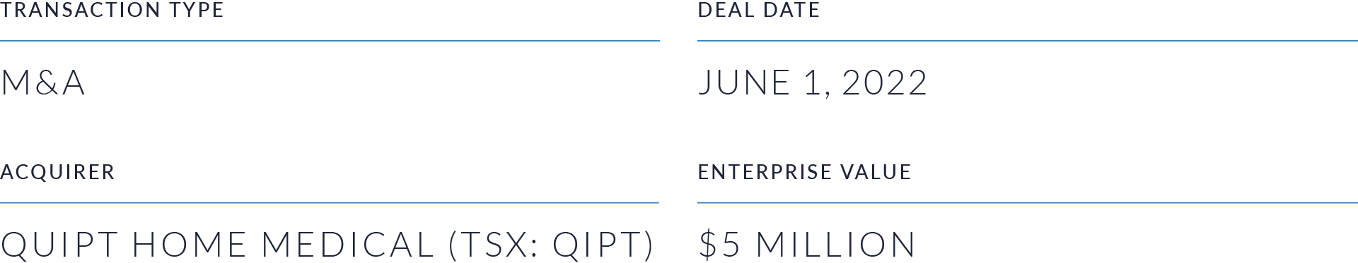 Quipt Home Medical Corp. acquired Access Respiratory Homecare for approximately $5 million in a cash transaction.