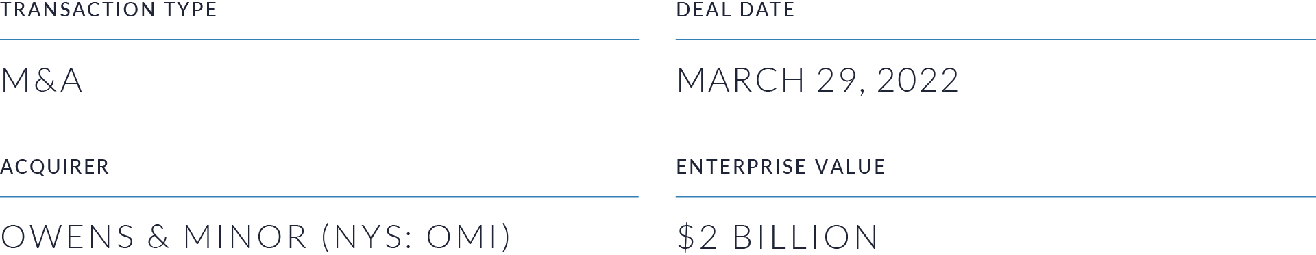 The acquisition brought together Apria’s strong presence in respiratory therapy, sleep apnea treatment, and wound care with Owens & Minor’s established healthcare supply business, which includes diabetes, ostomy, and incontinence products. The combination created the Patient Direct segment, expanding Owens & Minor’s reach into the home healthcare market and broadening its service offerings for hospitals, physicians, and payors, while deepening direct engagement with patients across the United States.